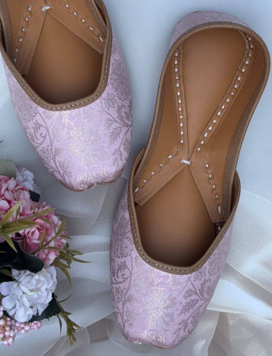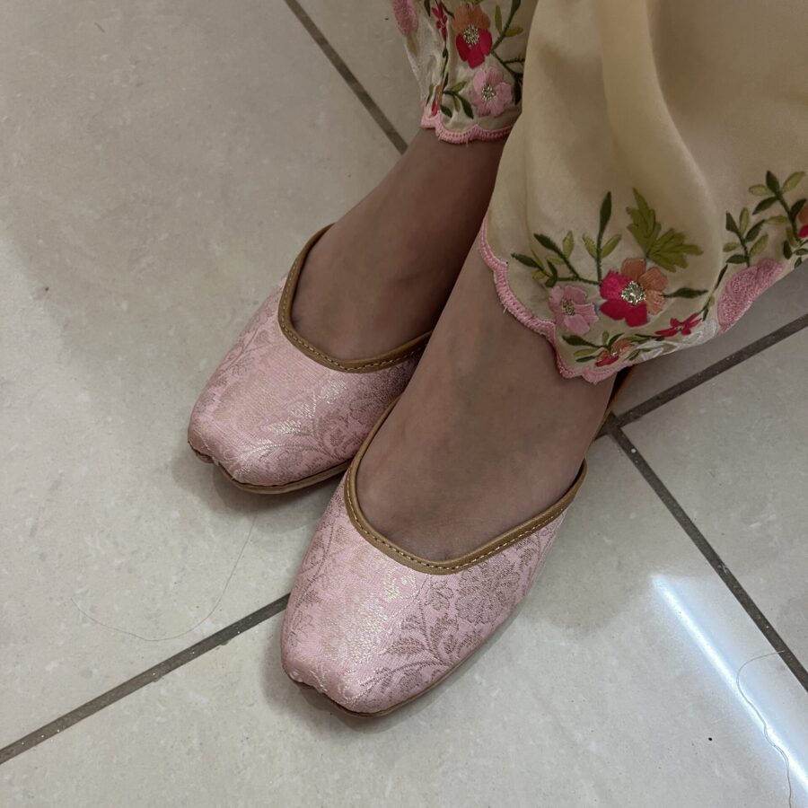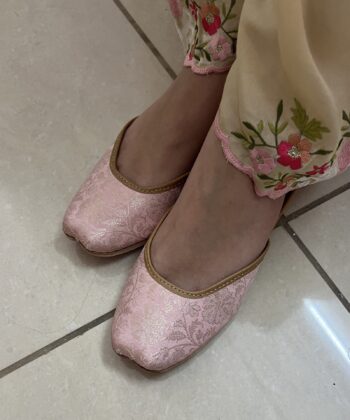 Adorn your feet with our exquisite collection of Brocade Juttis, designed to blend tradition with modern elegance. Crafted from premium brocade fabric and adorned with intricate embroidery, these juttis are perfect for weddings, festivals, or adding a regal touch to everyday outfits. Each pair features a soft cushioned solefor all-day comfort, a flexible leather base, and a snug fit tailored for women seeking lightweight, breathable footwear. Available in Baby Pink, Off-White, Phirozy, Sea Green, and Green, these juttis celebrate vibrant hues and Mughal-inspired artistry.