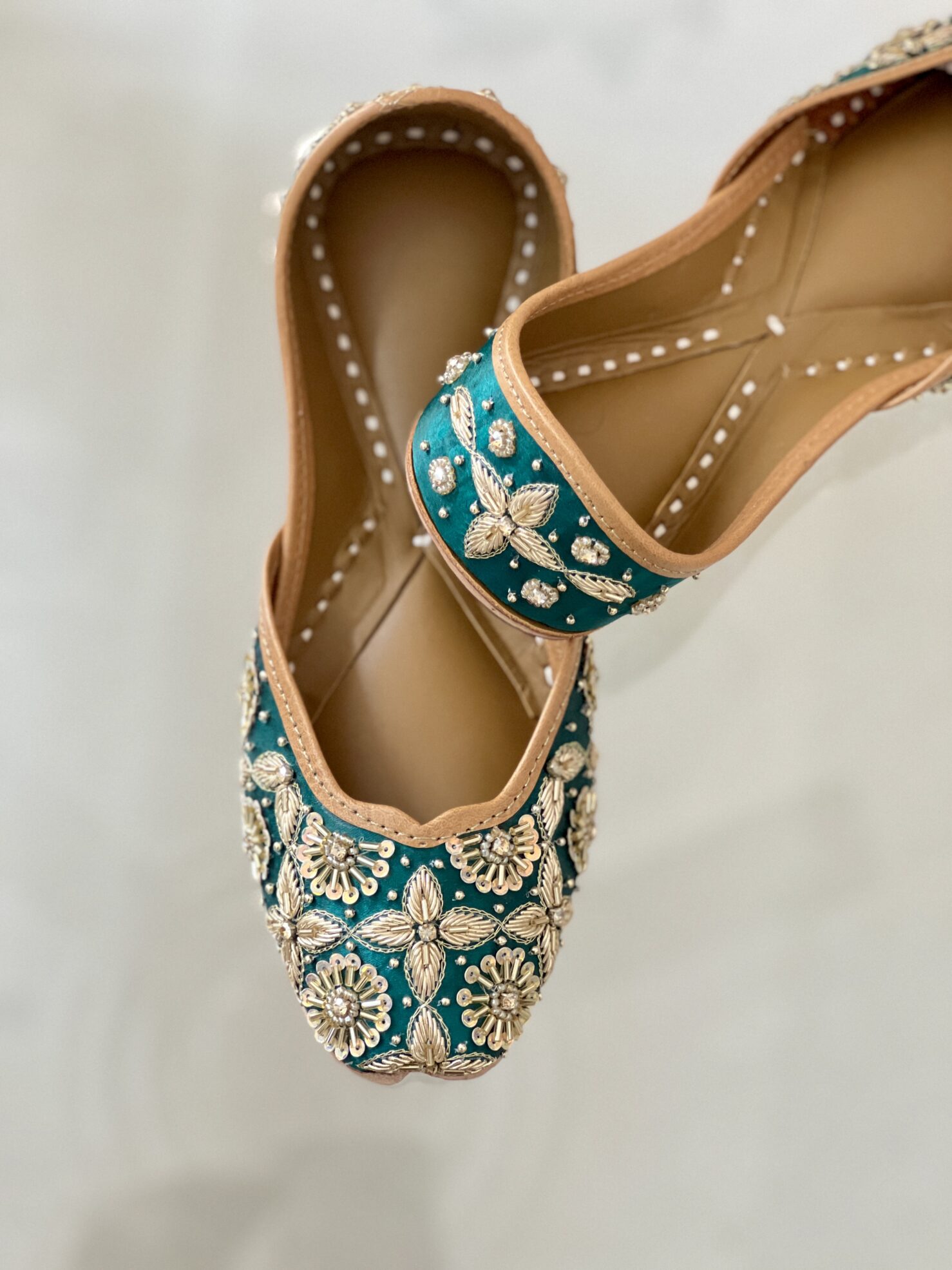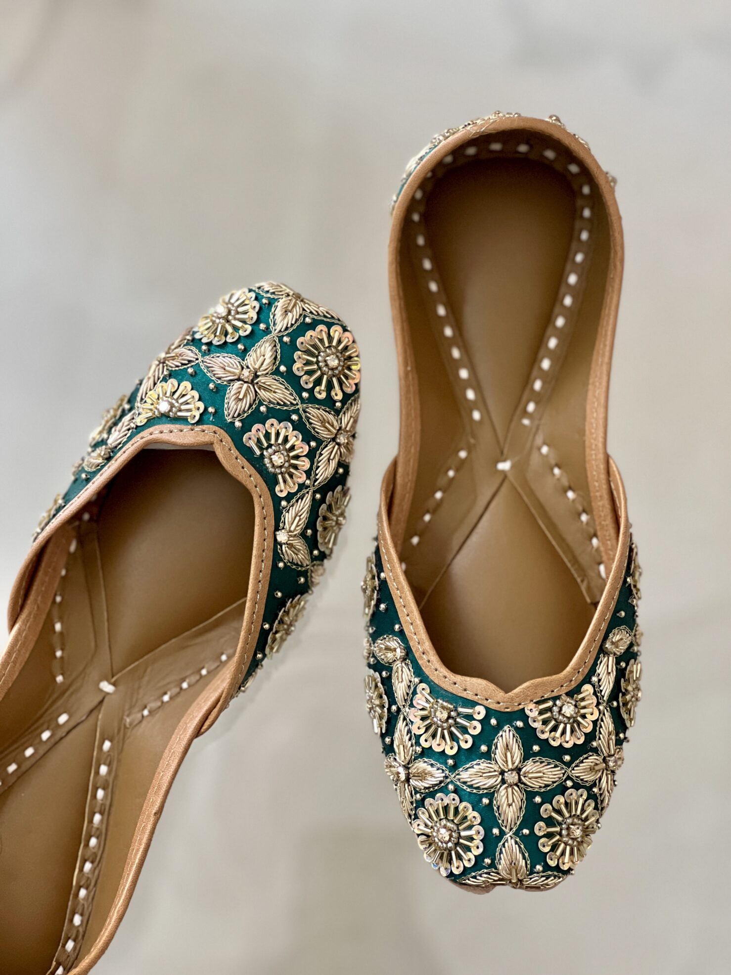 Green Jutti for women Golden dabka hand work jutti for ladies : Timeless Elegance, Handcrafted Comfort