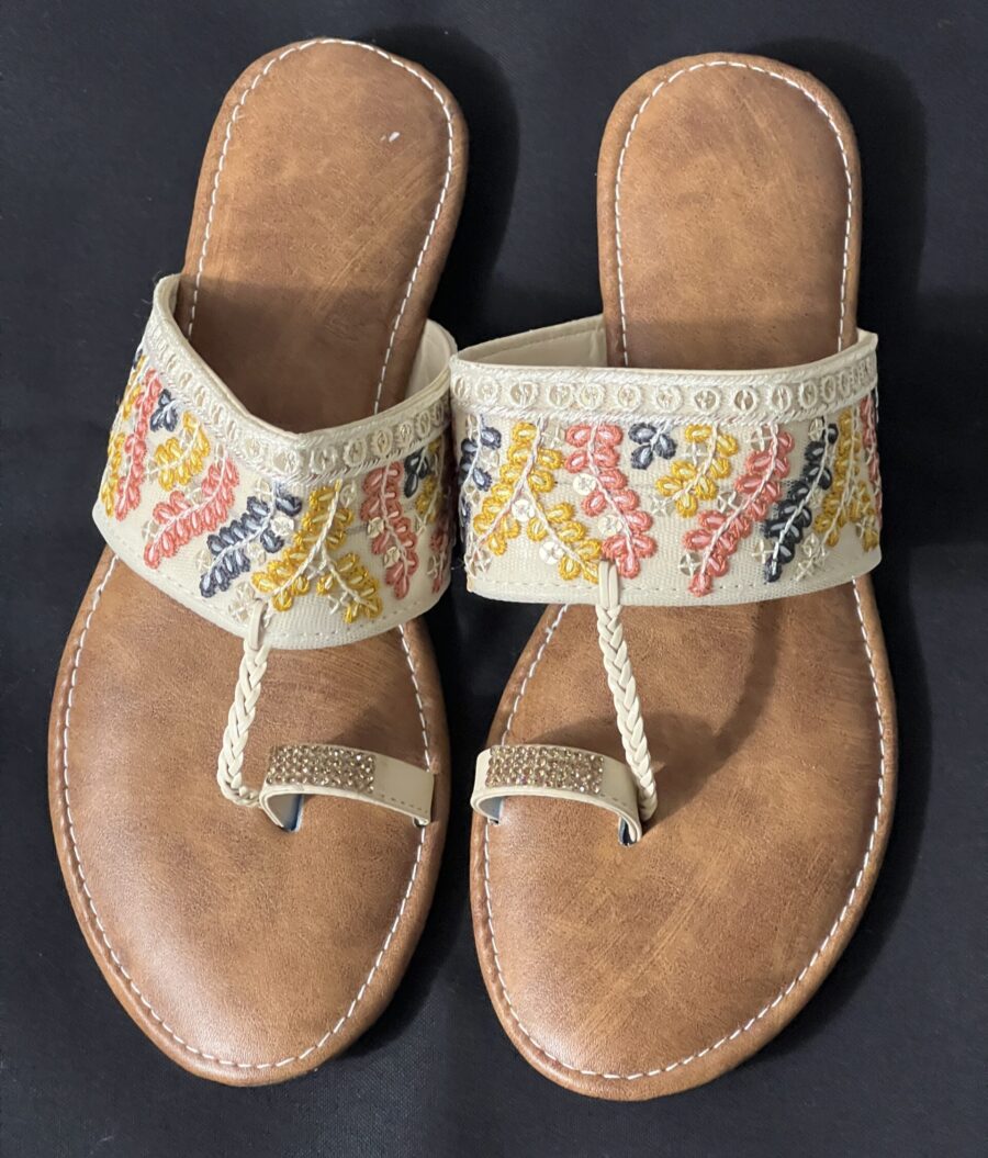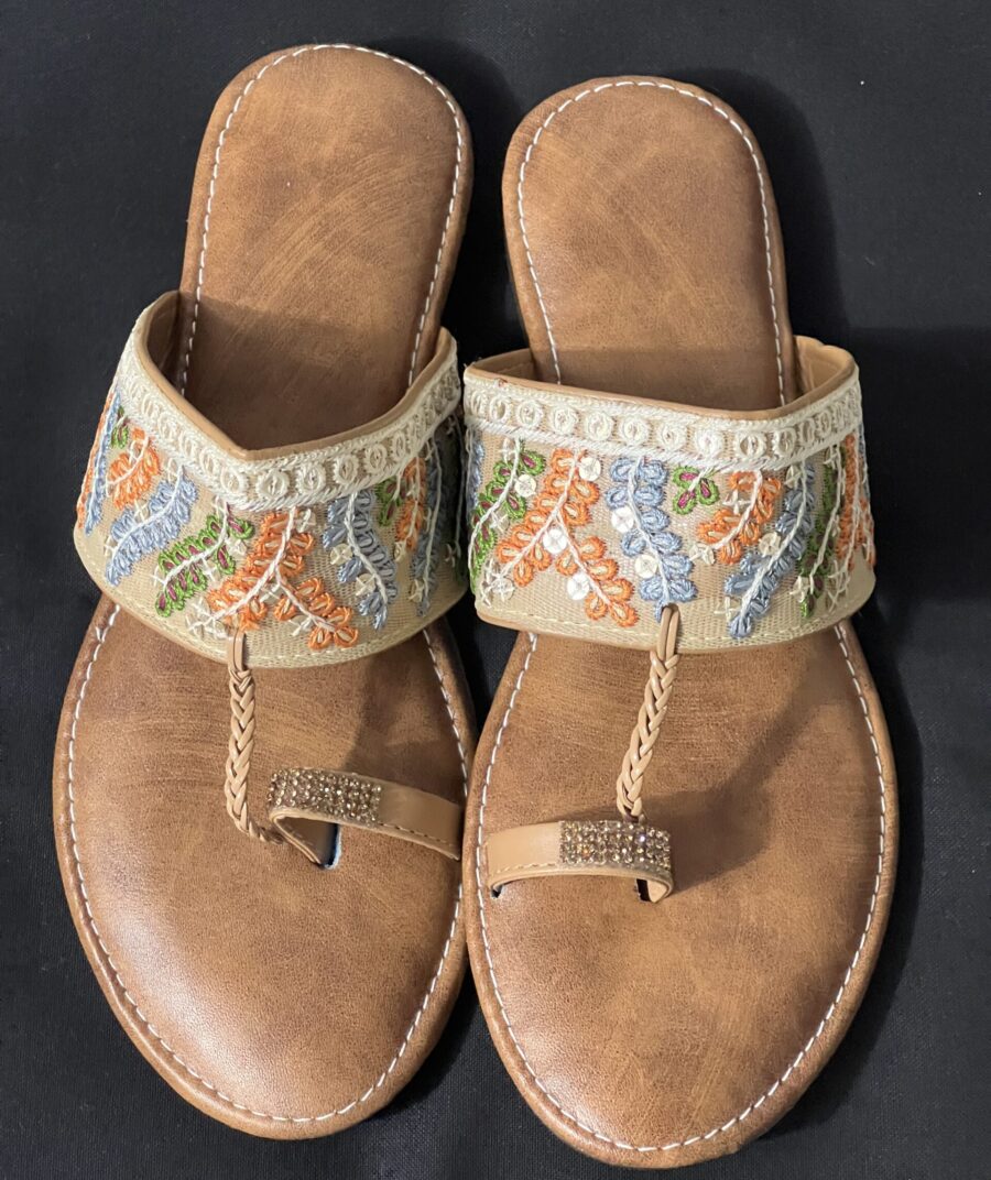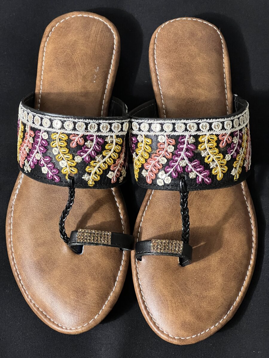 • Kohlapuri Style: Embrace timeless Indian craftsmanship with handcrafted leather slippers featuring intricate patterns.
