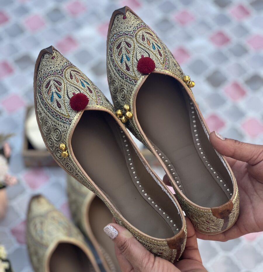 Designed for all-day comfort, the Biba Jutti features double cushioning and a breathable leather lining. The rich golden Tilla embroidery adds an elegant shimmer, making it a perfect match for festive wear, wedding outfits, or everyday ethnic ensembles.