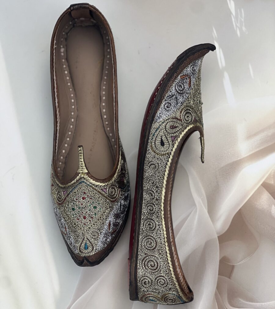 Light Golden Tilla Biba Jutti with Tiny tip – Handcrafted Leather Mojari