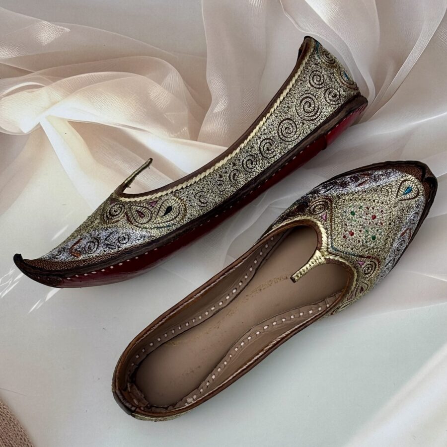 Designed for all-day comfort, the Biba Jutti features double cushioning and a breathable leather lining. The rich golden Tilla embroidery adds an elegant shimmer, making it a perfect match for festive wear, wedding outfits, or everyday ethnic ensembles.