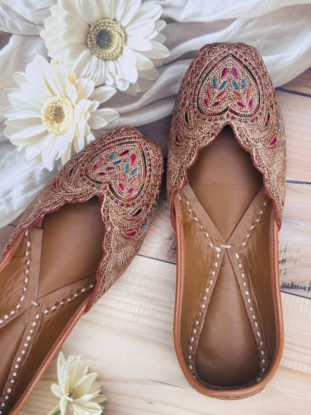 • multicoloured golden tilla jutti copper shade jooti, women juti