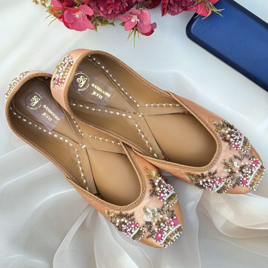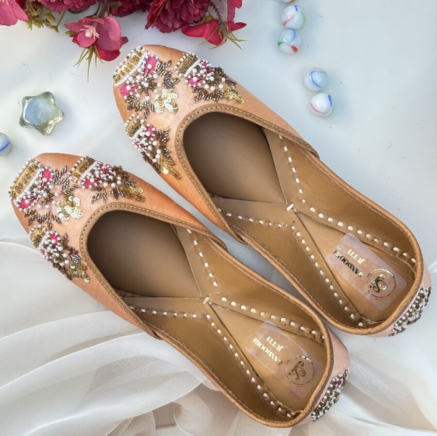 Peach Elegance – Handcrafted Punjabi Jutti for Women