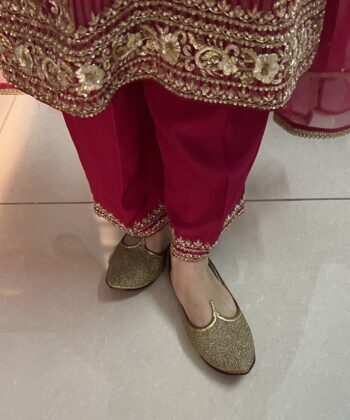 Introducing the Gul-Pecha Jutti, a delicate yet luxurious peach Punjabi jutti handcrafted with soft leather and detailed with intricate golden tilla jaal embroidery. Inspired by graceful Biba-style aesthetics, this design celebrates femininity with a modern twist on traditional art.