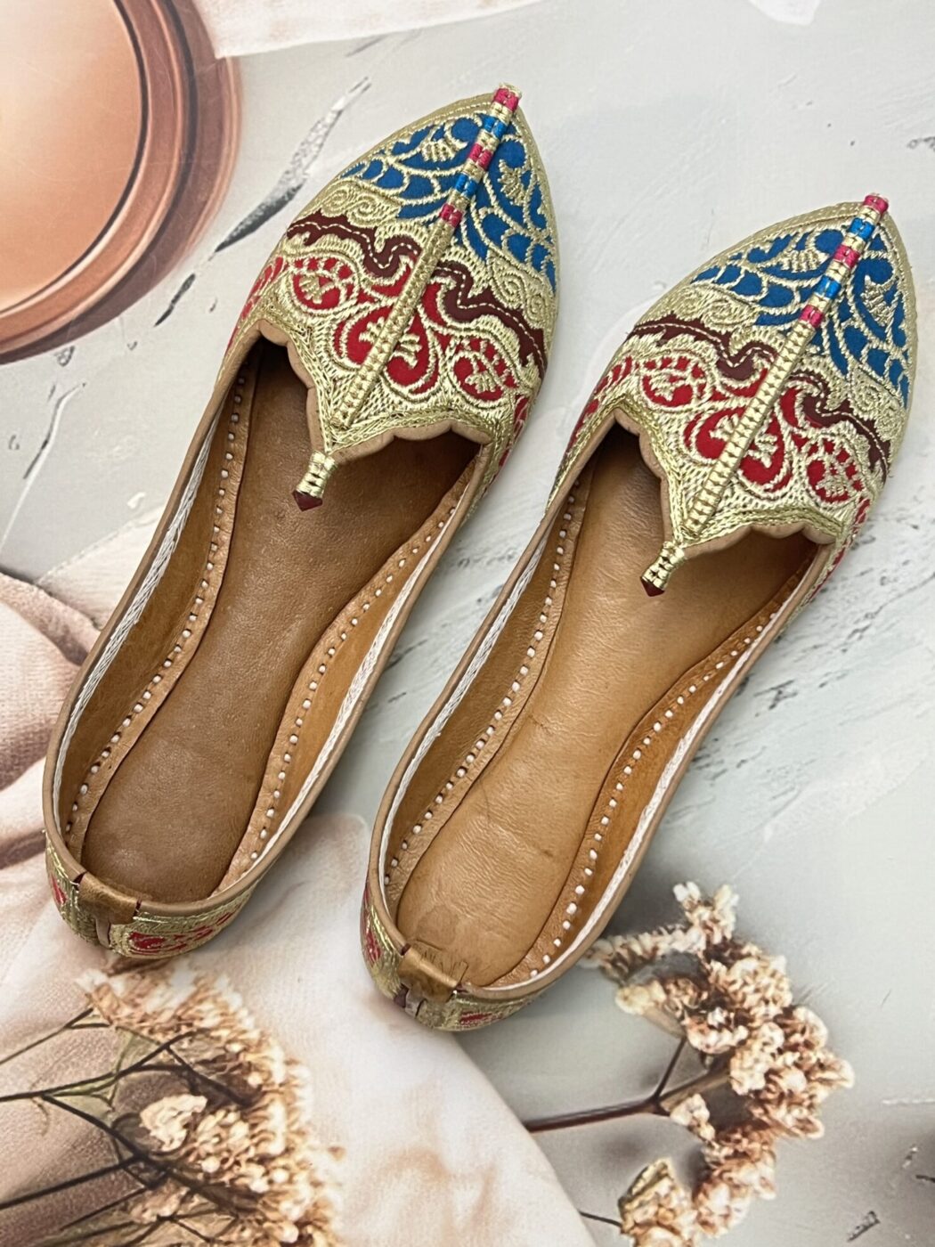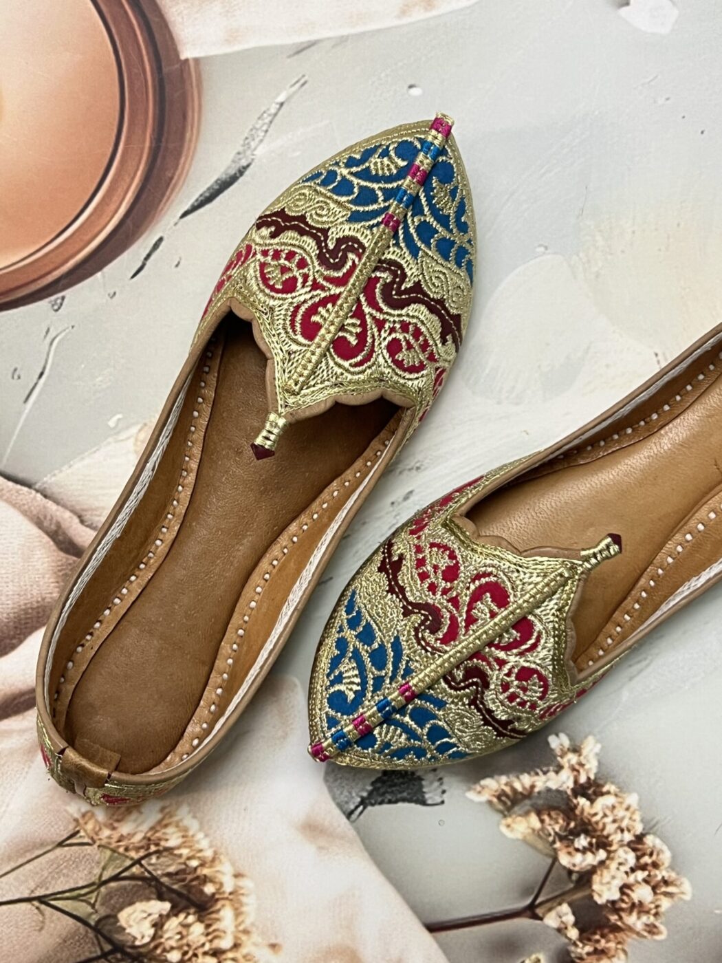 Whether you’re dressing up for a Mehendi function or adding flair to your casual kurti-jeans combo, the Sandoori Biba Jutti brings the best of heritage Indian footwear to your feet.