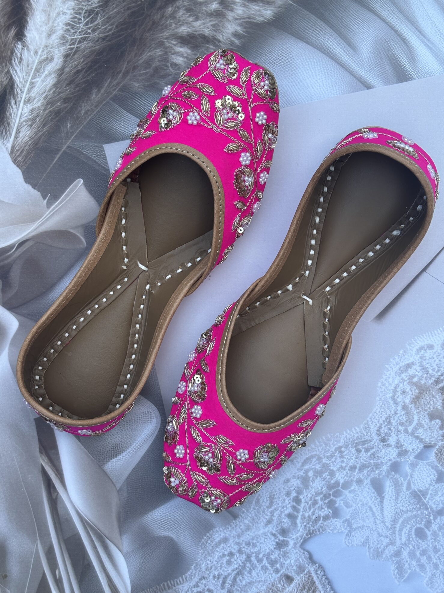 Step into timeless beauty with our Partywear Rani Pink Juttii. Crafted from original leather, they feature a super-soft, double-cushioned sole, ensuring unmatched comfort for all-day wear. Whether you’re dressing up for a festive celebration, a wedding, or elevating your everyday office look, these versatile juttis complement any outfit—from party wear to casual ensembles.