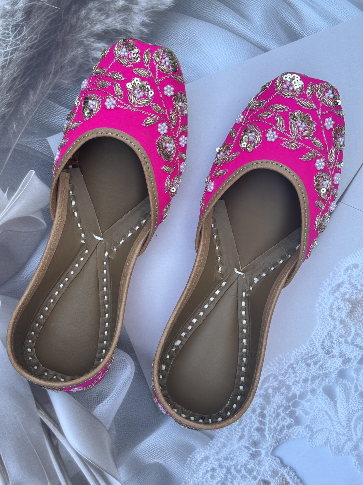 Step into timeless beauty with our Partywear Rani Pink Juttii.