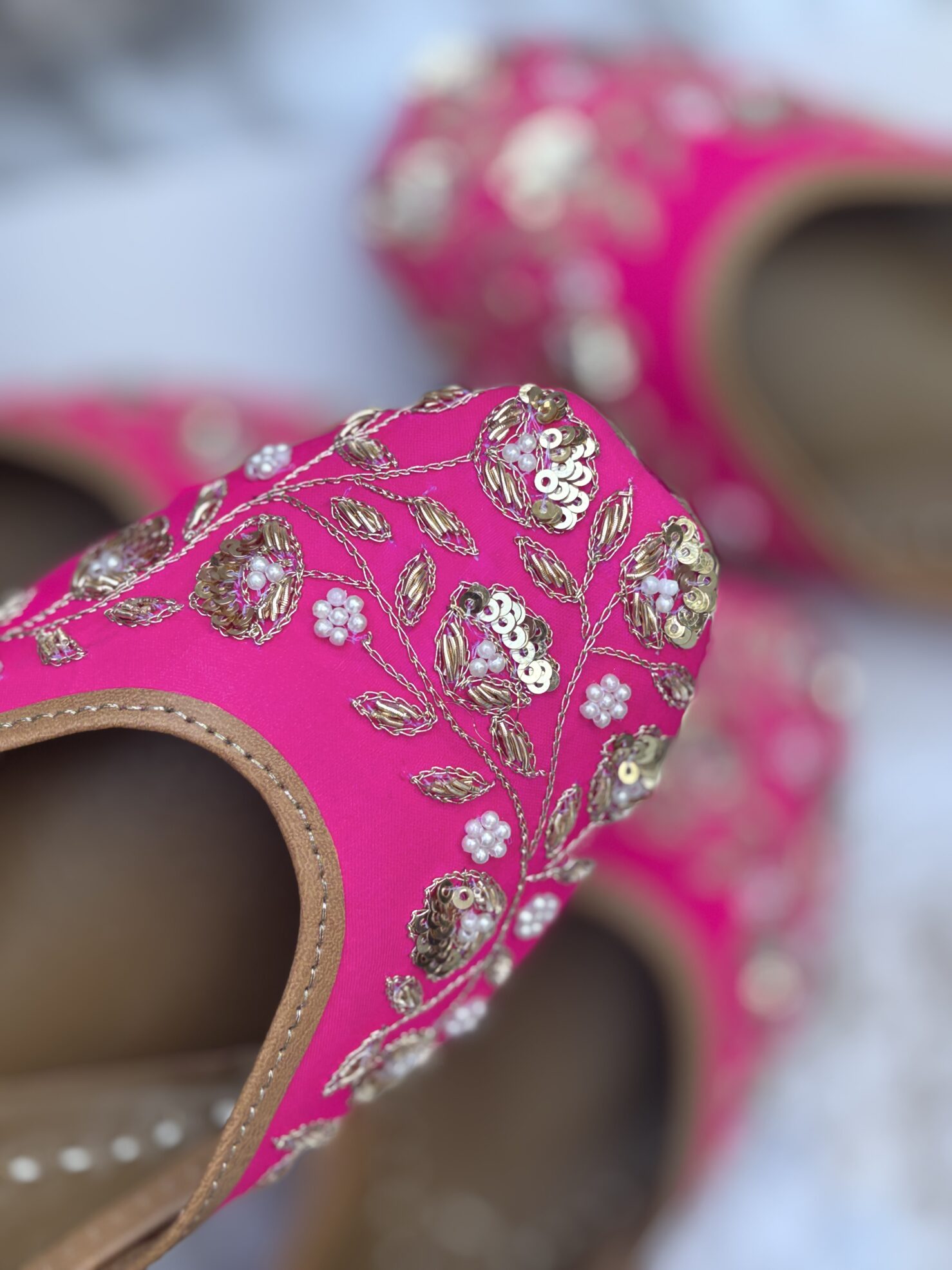 • Rani Pink hand embroidered jutti for ladies