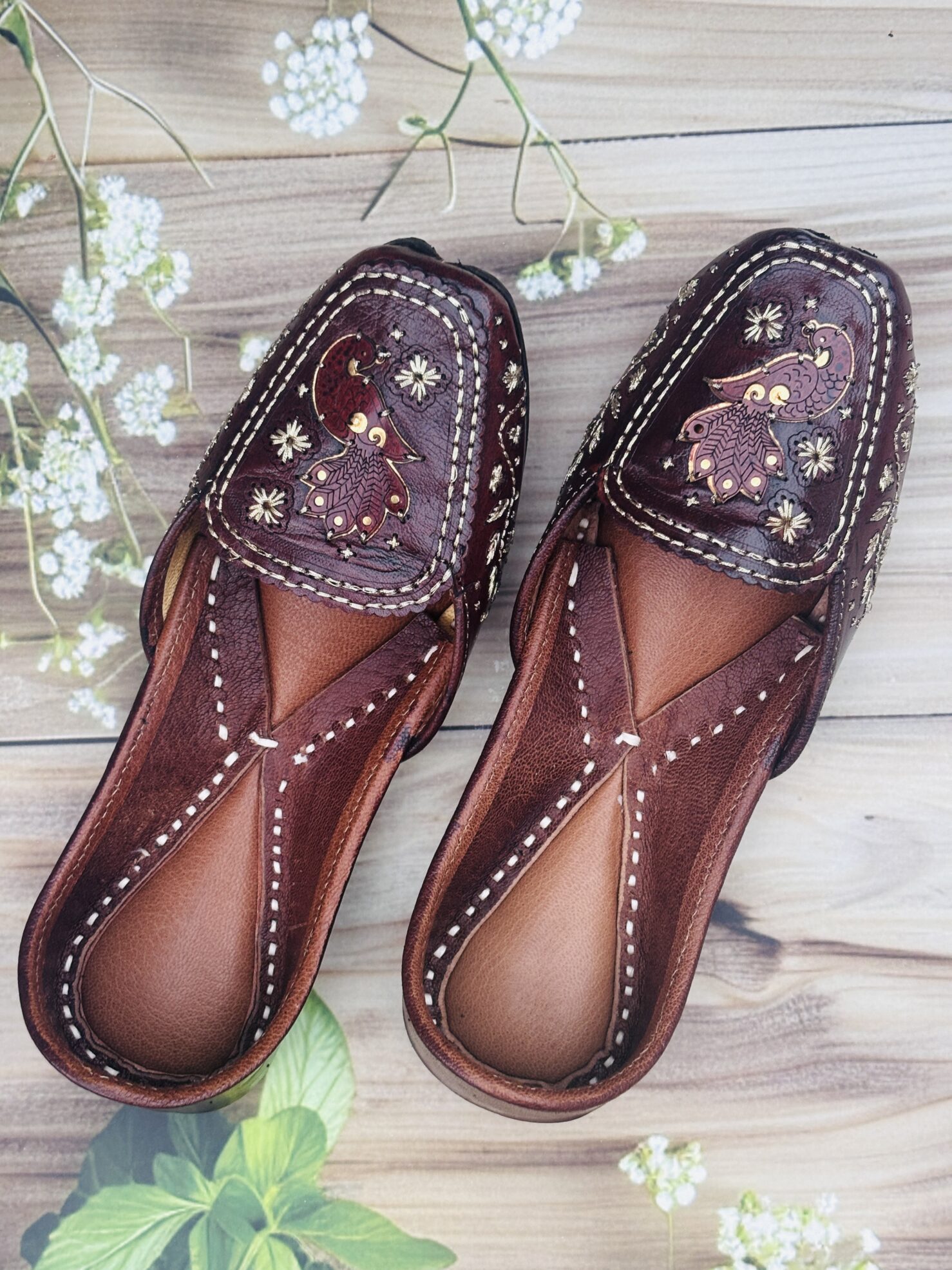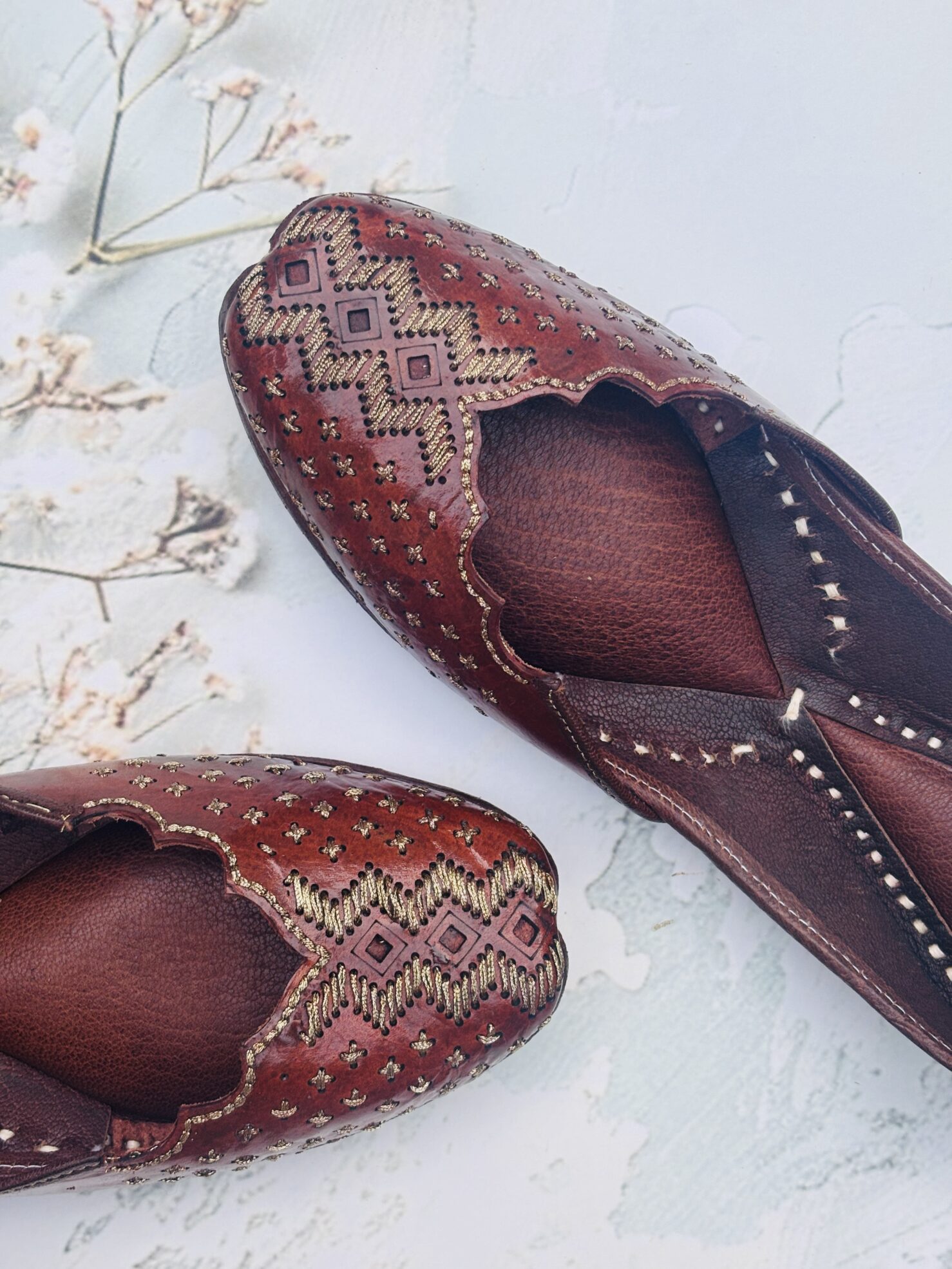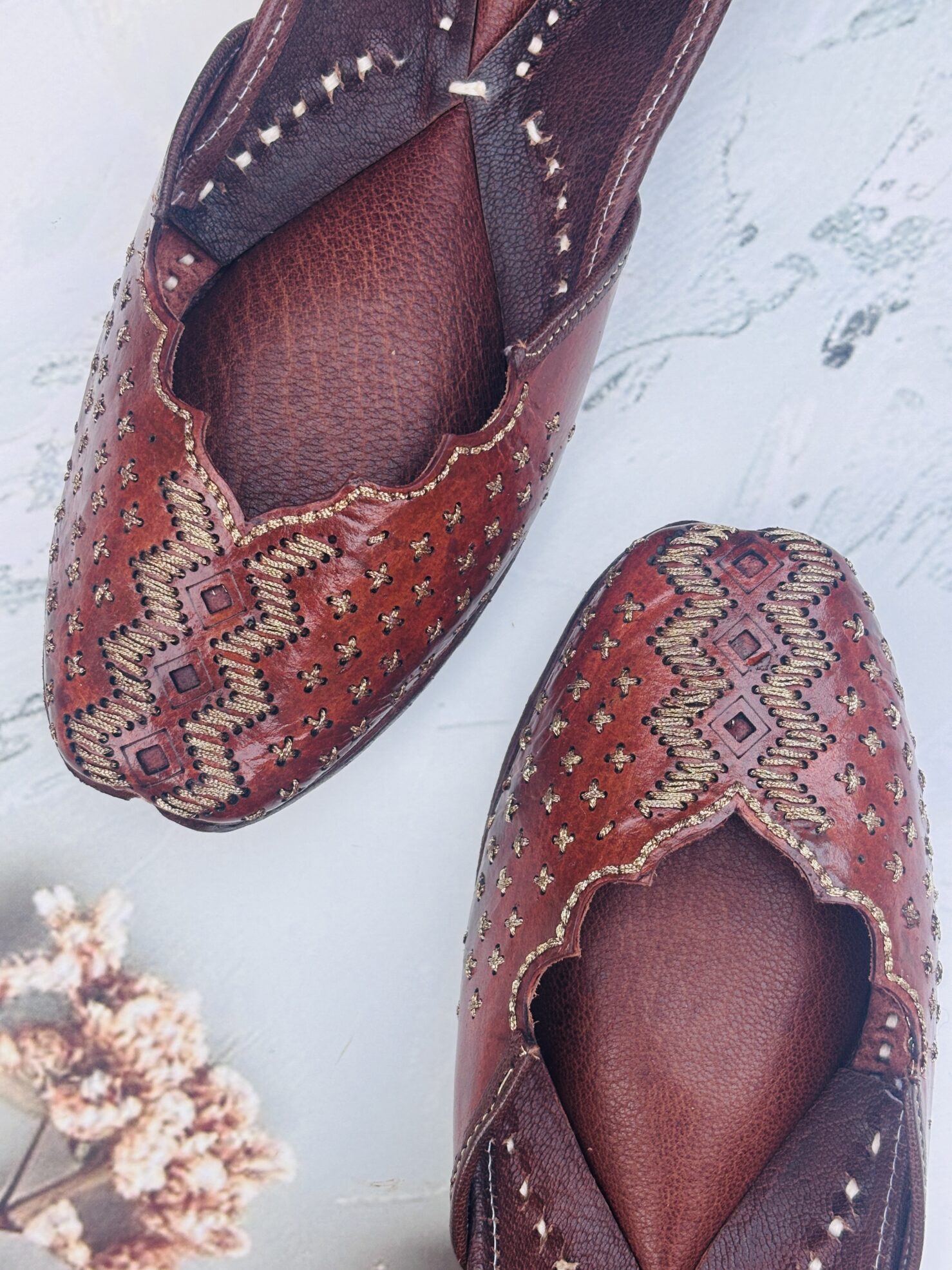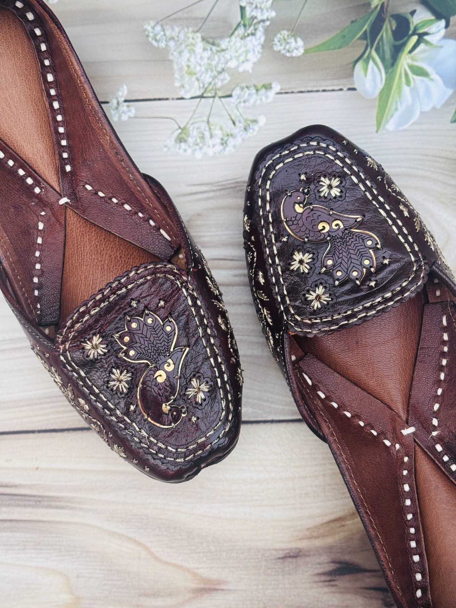 Everyday Comfort Juttis for ladies : Brown Juttis with Golden Tilla Handwork, Bold. Beautiful. Built to turn heads.