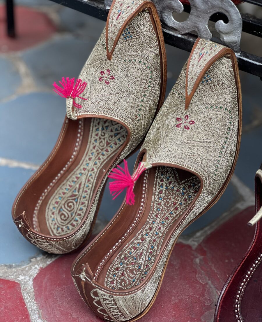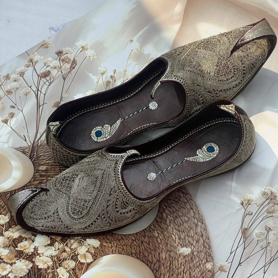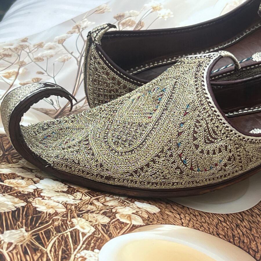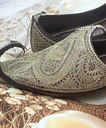 Made with premium quality leather and finished with traditional golden tilla embroidery with single thread aari handwork, it’s an essential piece for grooms, groomsmen, and men who carry culture with confidence. Whether it’s a wedding, a cultural festivity, or a heritage celebration, this Muchh Wali Jutti ensures you make a powerful impression with every step. Butter like softened with pure mustard oil leaving behind a brownish elegant look.