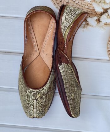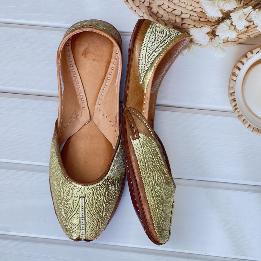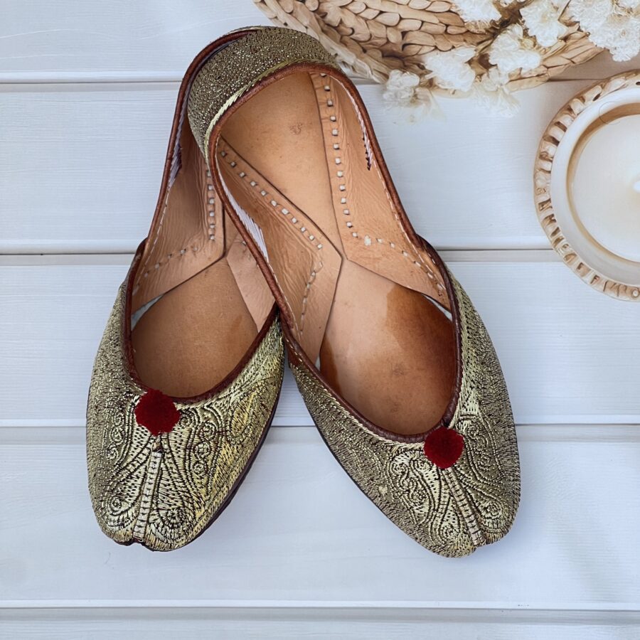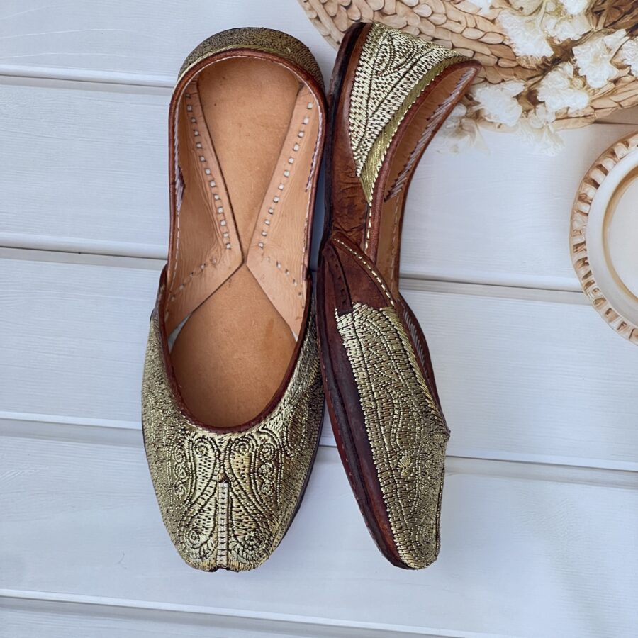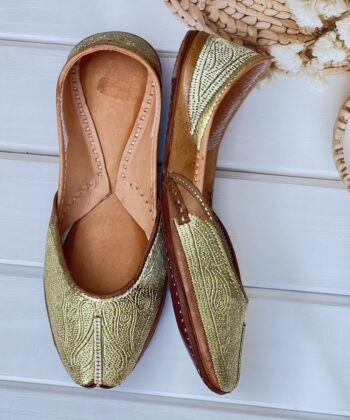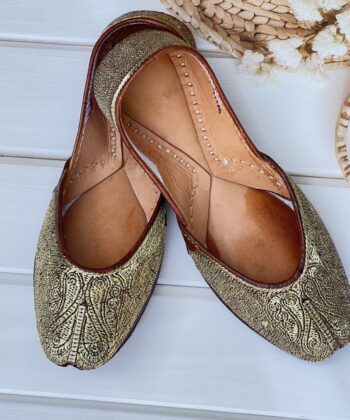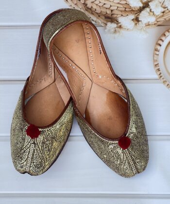 Step into tradition with our Golden Tilla Juttis, a perfect blend of heritage craftsmanship and modern comfort. Hand-stitched with intricate pure pakistani Golden tilla embroidery, these juttis showcase the richness of traditional artistry.