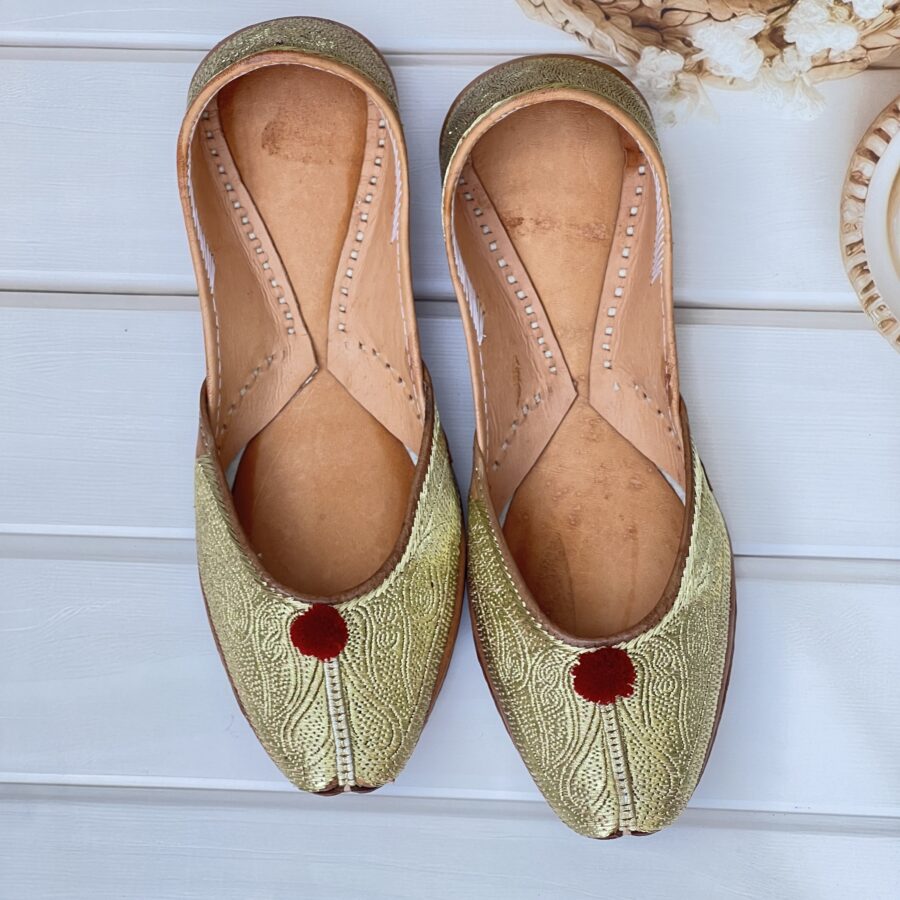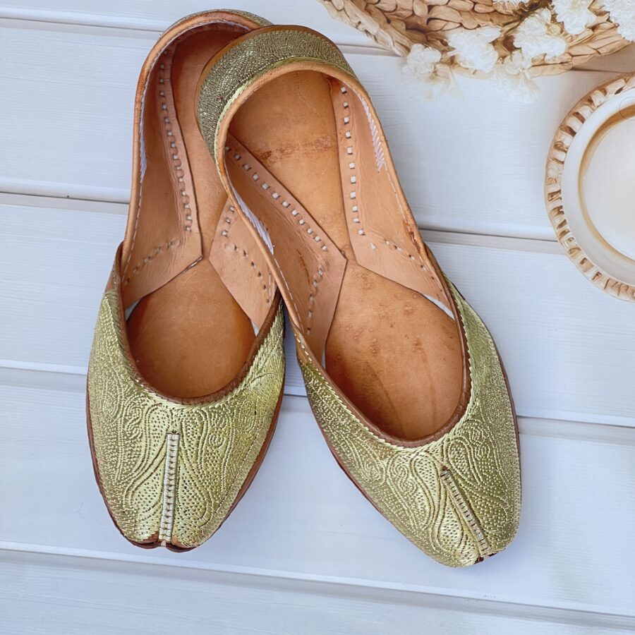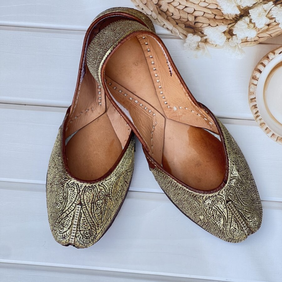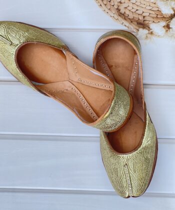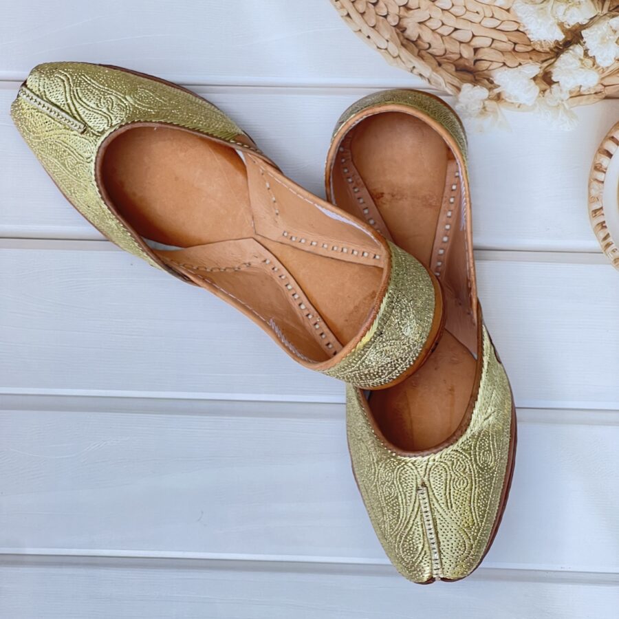 Step into tradition with our Golden Tilla Juttis, a perfect blend of heritage craftsmanship and modern comfort. Hand-stitched with intricate pure pakistani Golden tilla embroidery, these juttis showcase the richness of traditional artistry.