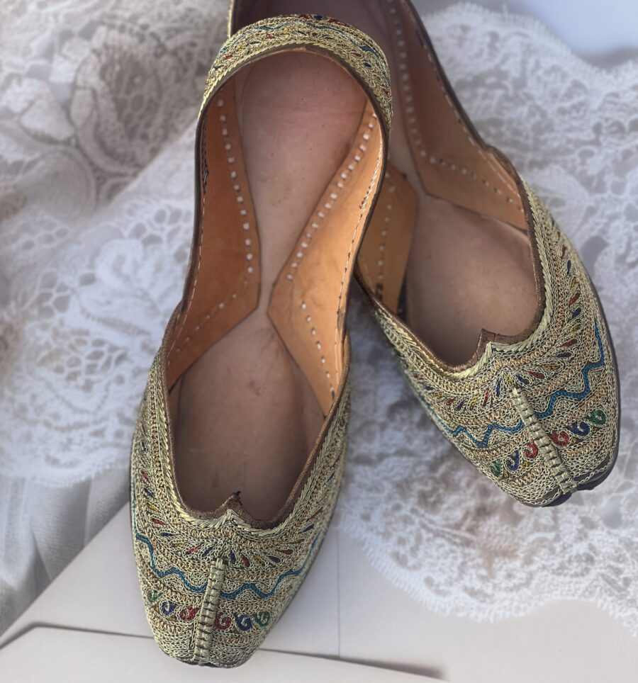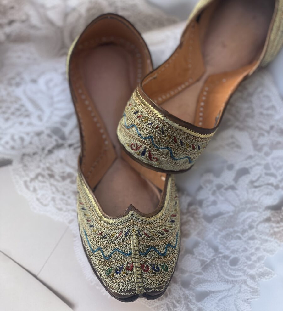 Elevate your ethnic style with *Tilledaar Luxe, a signature piece from **Sandoori Jutti’s Luxury Collection. Designed for those who admire fine detail, each jutti features **pure golden Pakistani Tilla and intricate Afghani Aari embroidery*, handcrafted by expert Afghan artisans.